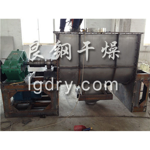 以高效、快速混合物料、由攪拌軸的螺旋帶運動下,使內外螺旋帶在較大范圍內翻動物料,內螺旋帶將物料向兩側運動,外螺旋帶將物料由兩側向內運動,使物料來回滲混,另部分物料被螺旋帶推動下,沒軸向徑向運動,從而形成對流循環。由于上述運動的攪拌,物料在較短時間內獲得快速…